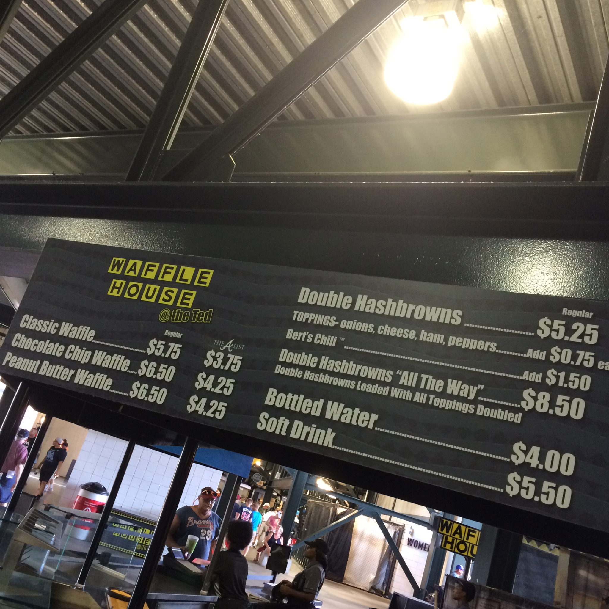 If you have ever been to the south, you already know Waffle House is every where & a must try if you’ve never experienced the real deal. I Love seeing local favorites inside the ball park!