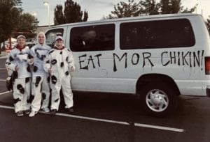 For one group of Utah students, “Free Chick-Fil-A Day” meant more than free lunch. Jared Avery, Alex Jimenez, Austin Ramsey, and Brig Rush saw an opportunity to give back, and they visited Chick-Fil-A’s around the state to collect sandwiches and feed the homeless. The four even rode around in style in a homemade, cow-themed van.